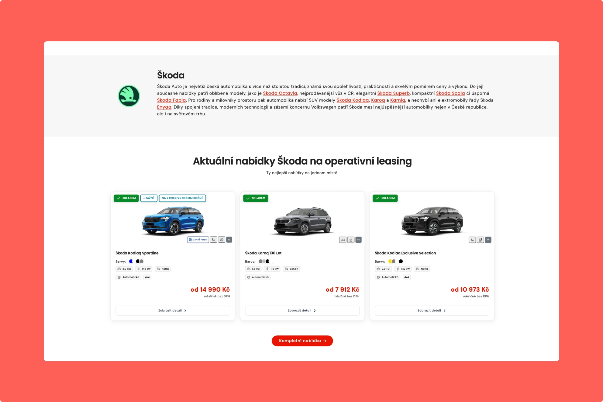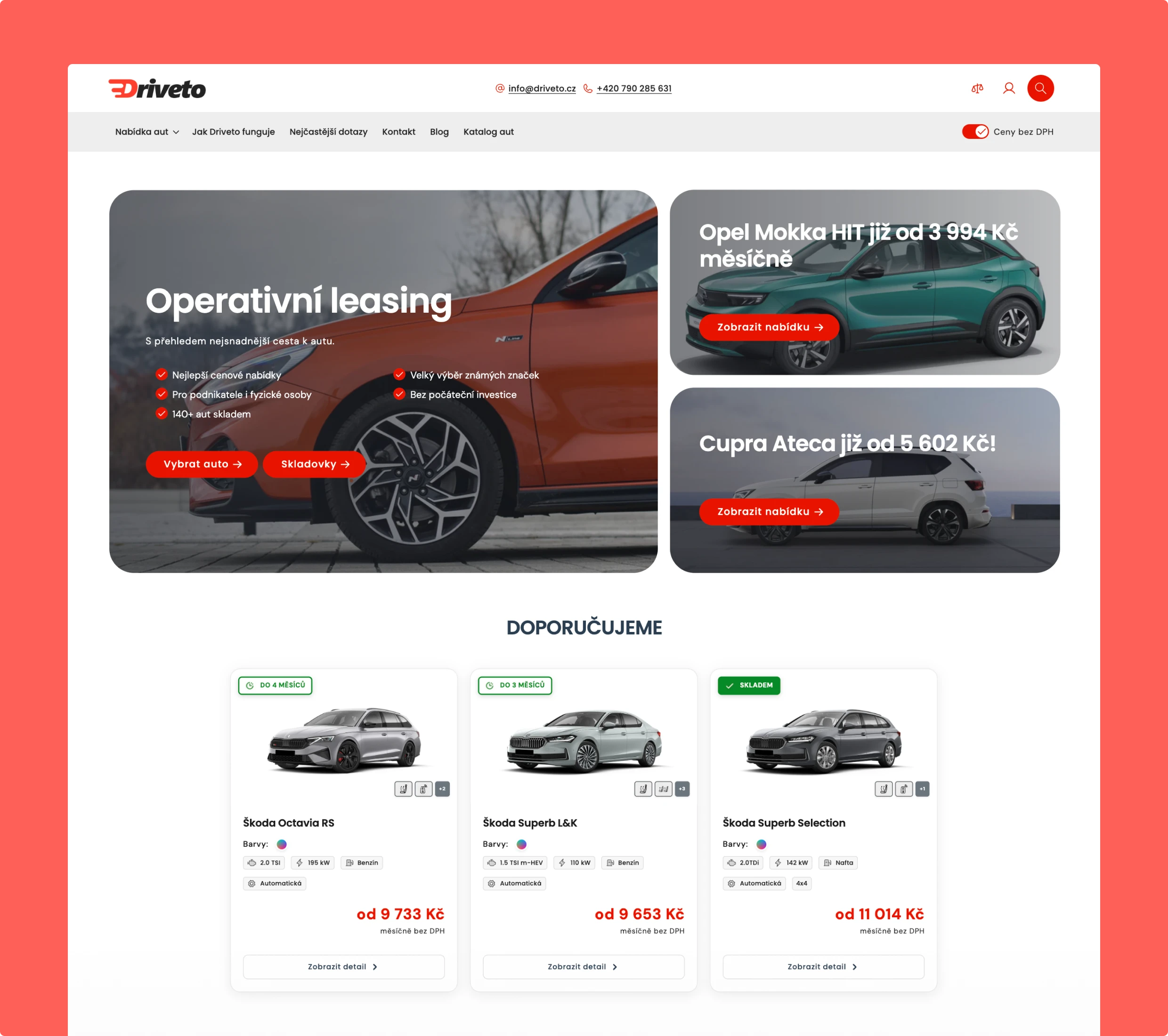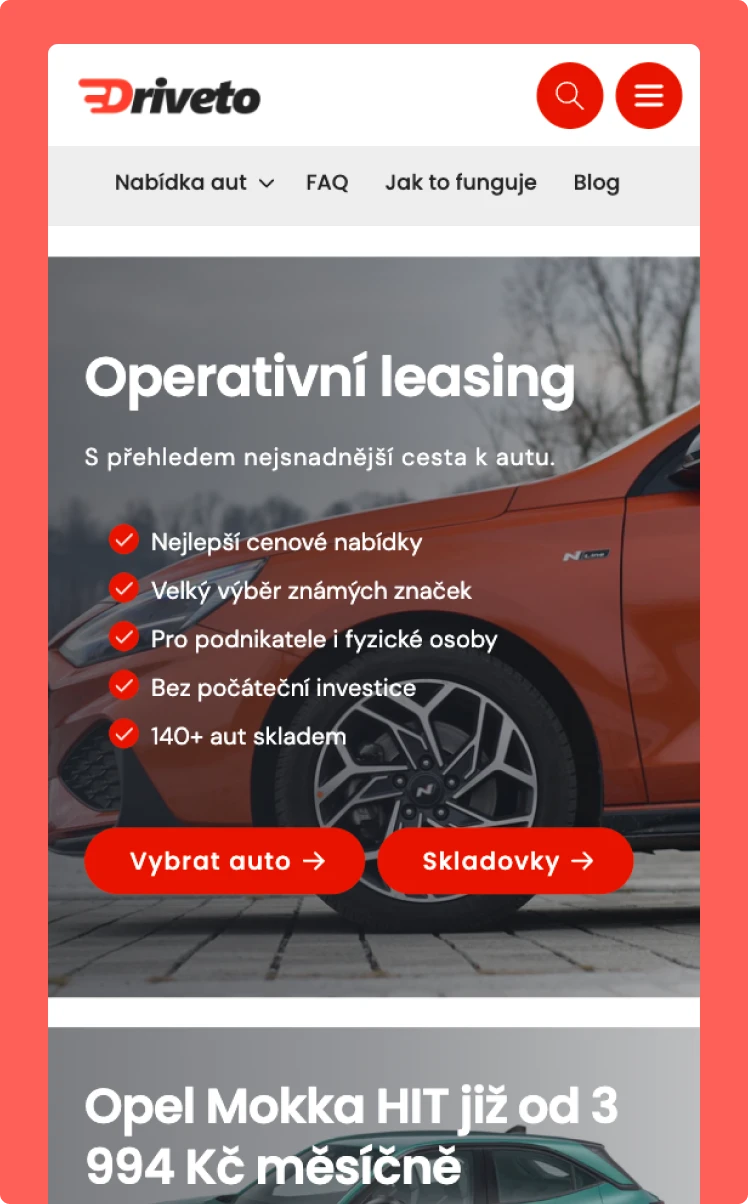 Migrace portálu pro operativní leasing na Shopify. Projekt zahrnoval kompletní redesign, rozsáhlou SEO optimalizaci a komplexní migraci dat.