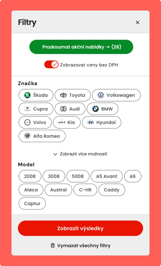 - SEO optimalizované filtrování: Pokročilá logika filtrování produktů navržená tak, aby odpovídala vyhledávacím dotazům a podporovala organiku.