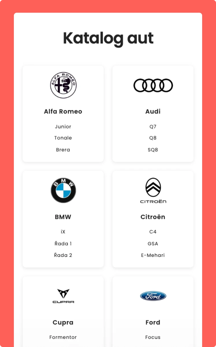 - Rozsáhlý katalog aut: Strukturovaná databáze vozidel navržená pro maximální podporu organické návštěvnosti.